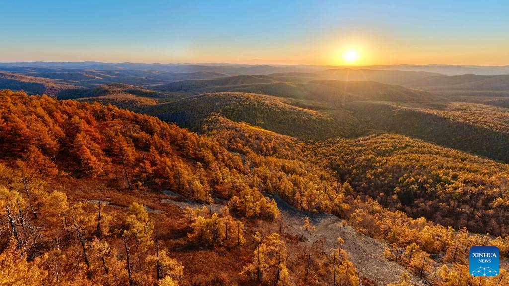 Die Luftaufnahme zeigt die wunderschöne Herbstlandschaft im „Horqin Right Wing Front Banner“. (28. September 2025, Xinhua)