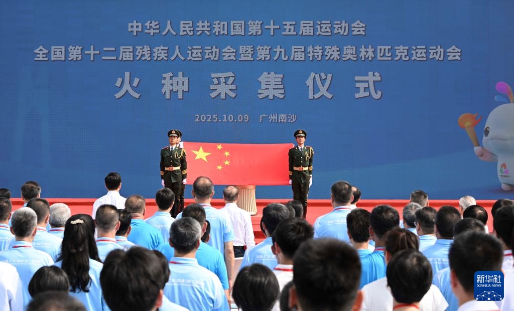 Die 15. Nationalen Spiele werden vom 9. bis 21. November gemeinsam von Guangdong, Hongkong und Macao ausgerichtet. Die 12. Nationalen Spiele für Menschen mit Behinderung sowie die 9. Nationalen Special Olympics finden vom 8. bis 15. Dezember statt. (9. Oktober 2025, Xinhua/Deng Hua)