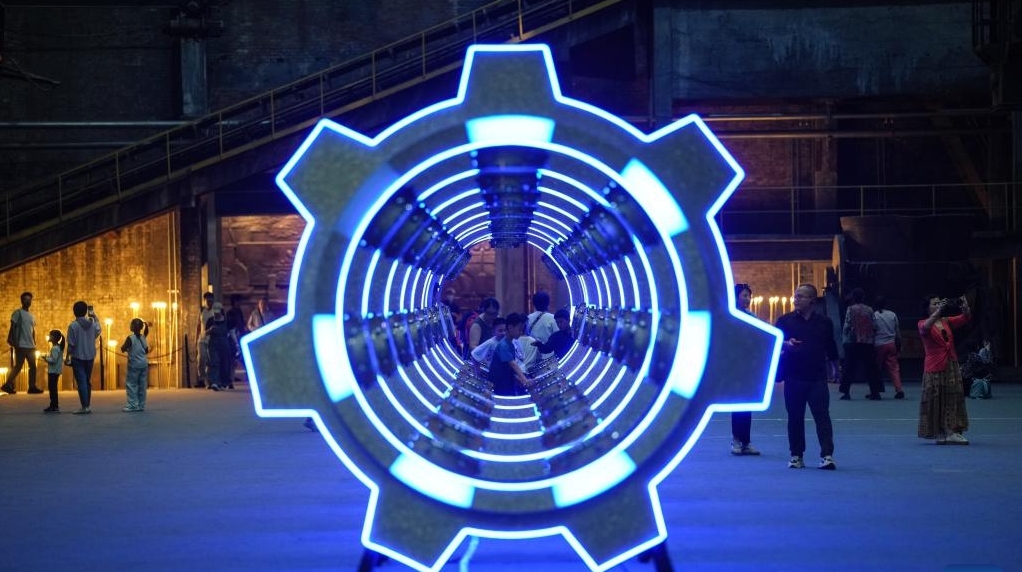 Eine Frau posiert für Fotos an einem Kultur- und Kreativstandort, der aus einer verlassenen Fabrik umgebaut wurde, in Shenyang, der Hauptstadt der nordostchinesischen Provinz Liaoning, 6. Oktober 2025. Viele ehemalige Industrieanlagen in Shenyang in der nordostchinesischen Provinz Liaoning wurden in öffentliche Freizeitflächen, Kreativparks und einzigartige Stadtviertel umgewandelt, die Bürgern und Touristen während der diesjährigen Ferien zum Nationalfeiertag und Mondfest einzigartige Erlebnisse bieten. (Quelle: Xinhua/Pan Yulong)