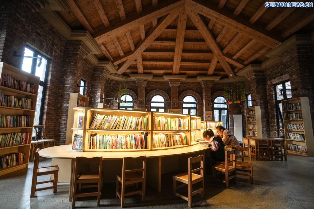 Bürger lesen Bücher an einem Kultur- und Kreativstandort, der aus einer verlassenen Fabrik umgebaut wurde, in Shenyang, der Hauptstadt der nordostchinesischen Provinz Liaoning, 6. Oktober 2025. (Quelle: Xinhua/Pan Yulong)