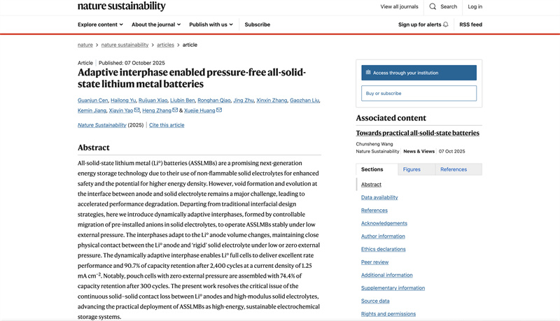 Chinesische Wissenschaftler haben eine selbstadaptive Zwischenphase in Festkörper-Lithiumbatterien entwickelt, die ohne äußeren Druck einen engen Kontakt zwischen der Lithium-Metall-Anode und dem Festelektrolyten aufrechterhält. Dies ist ein Durchbruch, der einen wichtigen Engpass auf dem Weg zur Kommerzialisierung entscheidend überwindet.