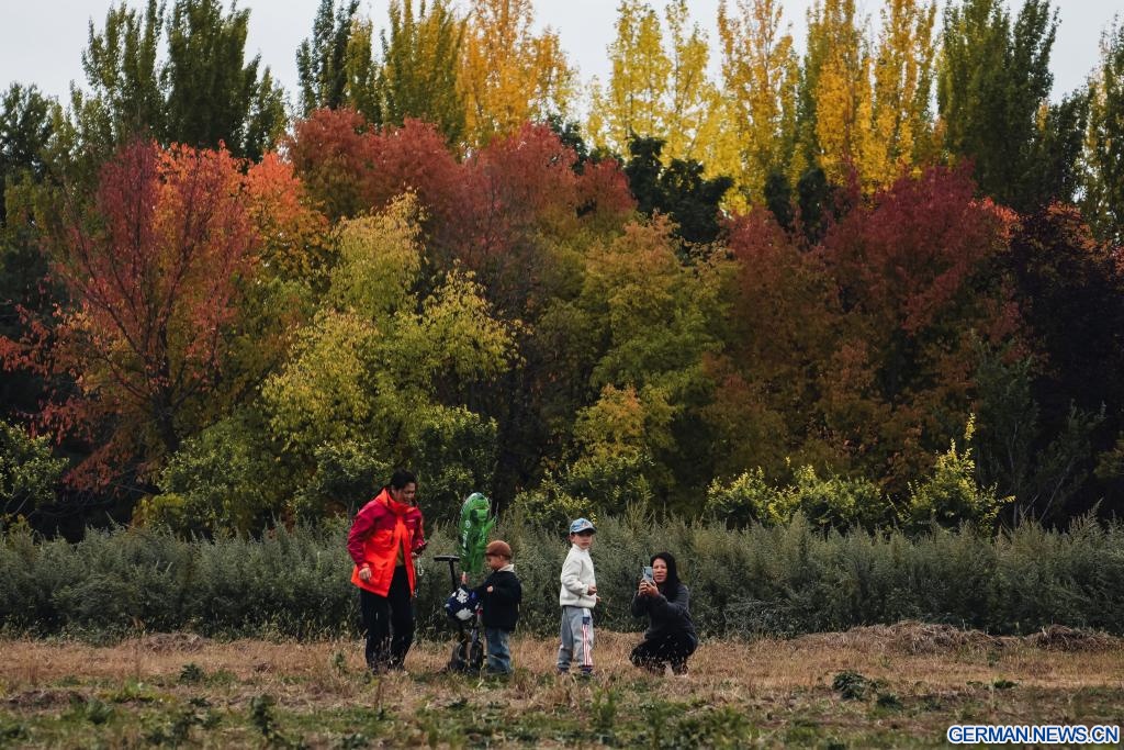 Touristen genießen Herbstlandschaft in Nordostchinas Jilin