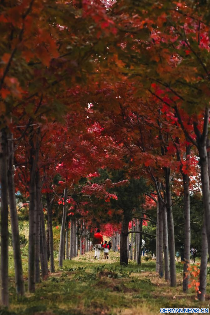Touristen genießen Herbstlandschaft in Nordostchinas Jilin