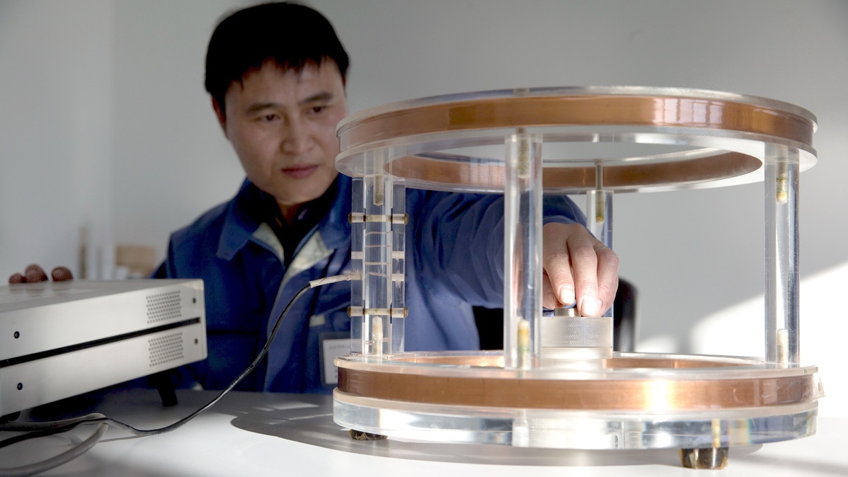 Ein Techniker führt bei Beijing Zhongke Sanhuan Hightech Co. Ltd. einen Test durch. Produkte aus Seltenen Erden des Unternehmens werden in den Bereichen Automobil, Haushaltsgeräte, Energie, Computer, Kommunikation und medizinische Versorgung eingesetzt. [Foto / Xinhua]