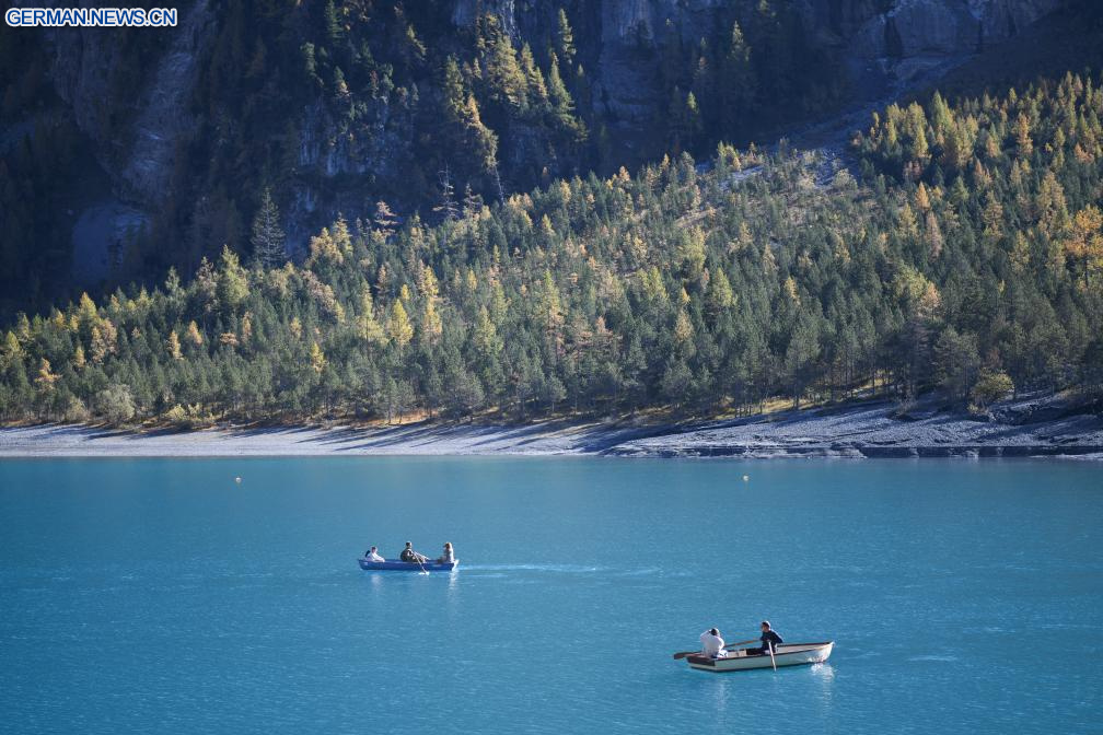 Herbstlandschaft des Oeschinensees im Berner Oberland in der Schweiz