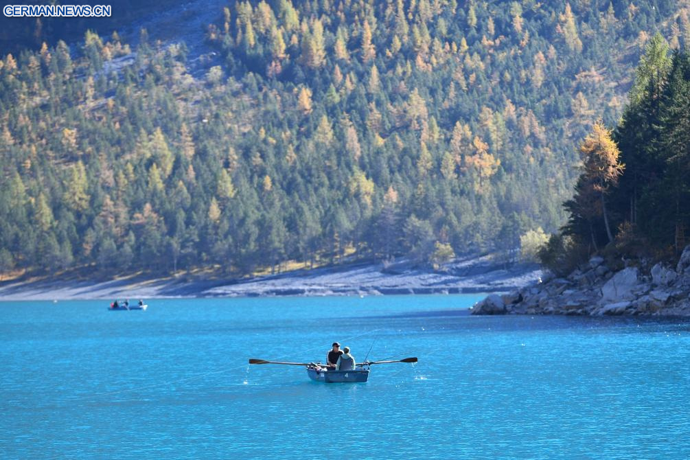 Herbstlandschaft des Oeschinensees im Berner Oberland in der Schweiz
