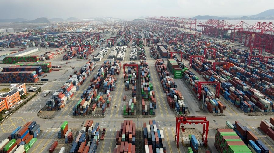 Eine Luftaufnahme zeigt den Yangshan-Hafen von Shanghai im Osten Chinas, 18. Dezember 2024. (Xinhua/Fang Zhe)