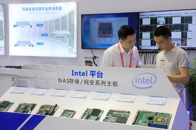 Auf einer Messe in Shanghai werden Produkte für die Cybersicherheit ausgestellt.