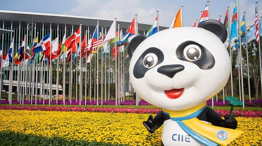 Das Foto zeigt Jinbao, das Maskottchen der China International Import Expo.