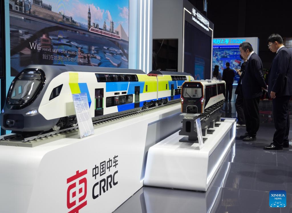 Ein Elektrotriebzugmodell und ein Magnetschwebebahnmodell werden ausgestellt. (5. November 2025, Xinhua)