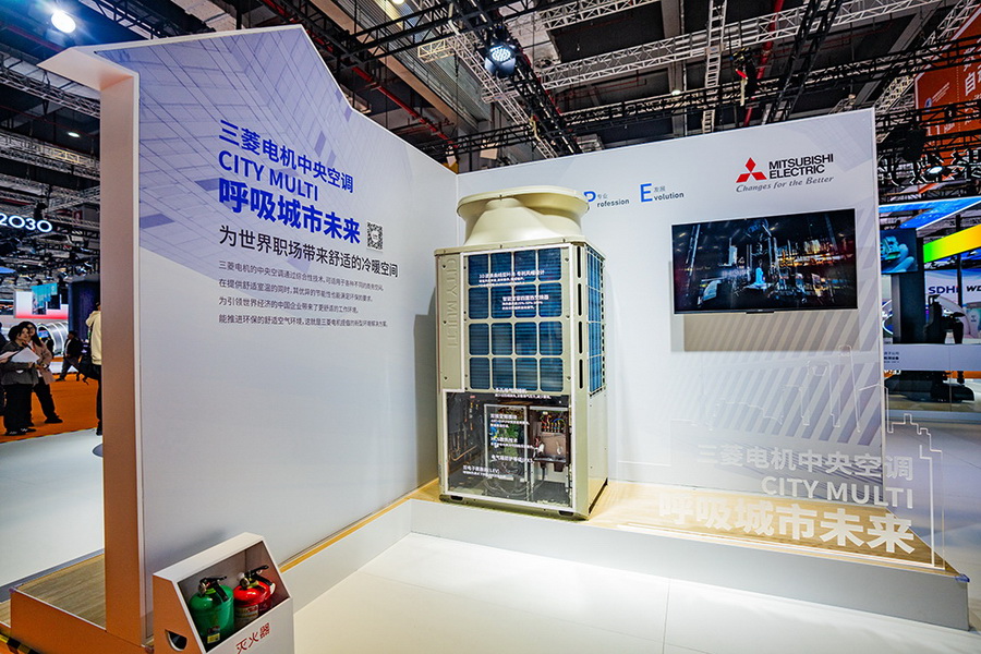 Mitsubishi Electric zeigt ihre Innovationen für Smart Cities und nachhaltige Entwicklung, darunter intelligente Verkehrssysteme und Energiemanagementlösungen. (Foto von Zheng Liang/ China.org.cn)