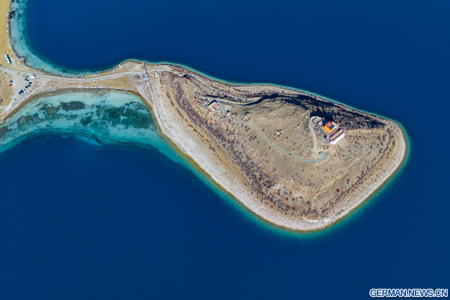Die Luftaufnahme einer Drohne zeigt den Yamzbog Yumco-See in der autonomen Region Xizang im Südwesten Chinas, 20. November 2025. (Xinhua/Jiang Fan)