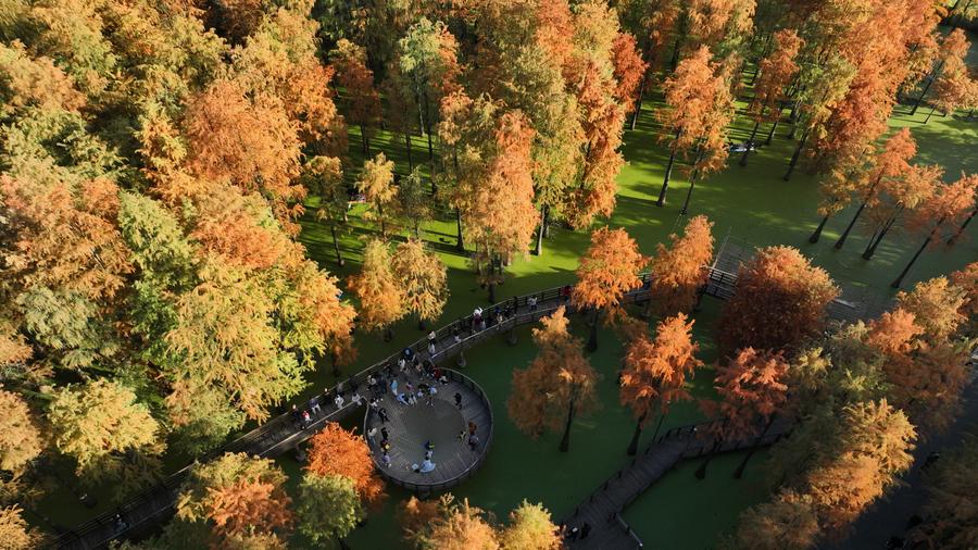Touristen besuchen den Qingshan-See im Bezirk Lin'an der Stadt Hangzhou in der ostchinesischen Provinz Zhejiang am 28. November 2025. (Xinhua/Weng Xinyang)