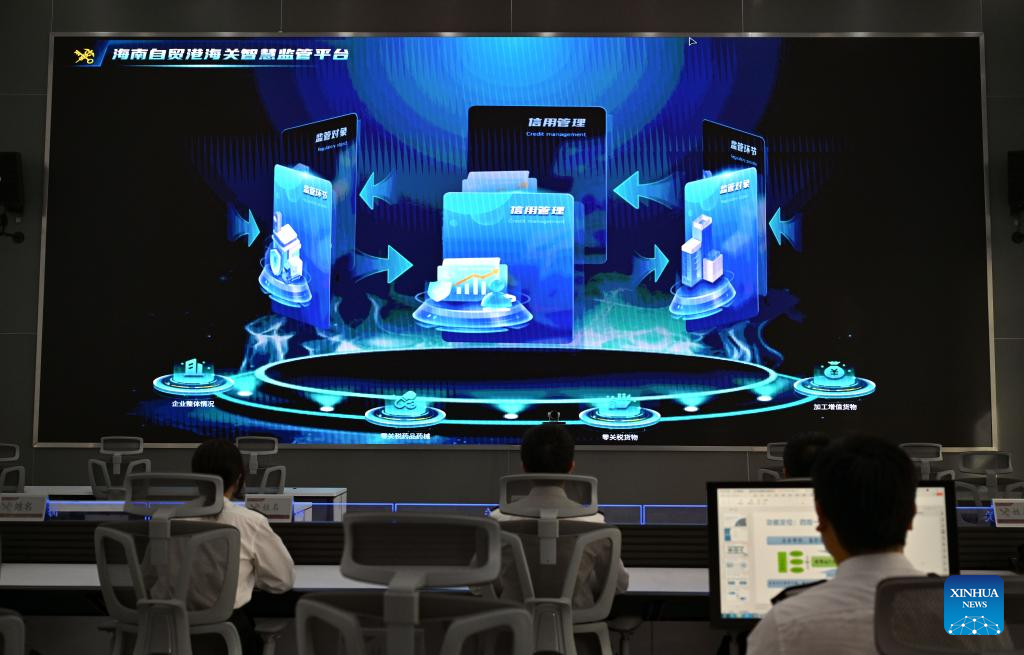 Dieses Foto zeigt den Bildschirm einer Online-Plattform für die intelligente Zollüberwachung des Freihandelshafens Hainan im Service-Betriebsüberwachungszentrum der Zollbehörde von Haikou in Haikou, am 27. November 2025. (Xinhua/Guo Cheng)