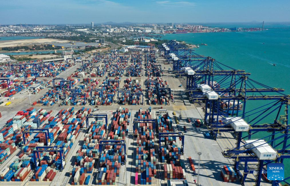 Das Drohnenfoto vom 28. November 2025 zeigt den Yangpu-Hafen in der Yangpu-Wirtschaftsentwicklungszone in Danzhou in der südchinesischen Provinz Hainan. (Xinhua/Guo Cheng)