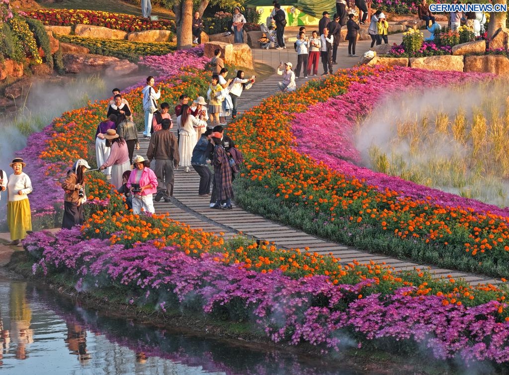 Touristen genießen Blumen im Landschaftsgebiet Qingxiu-Berg im südchinesischen Nanning