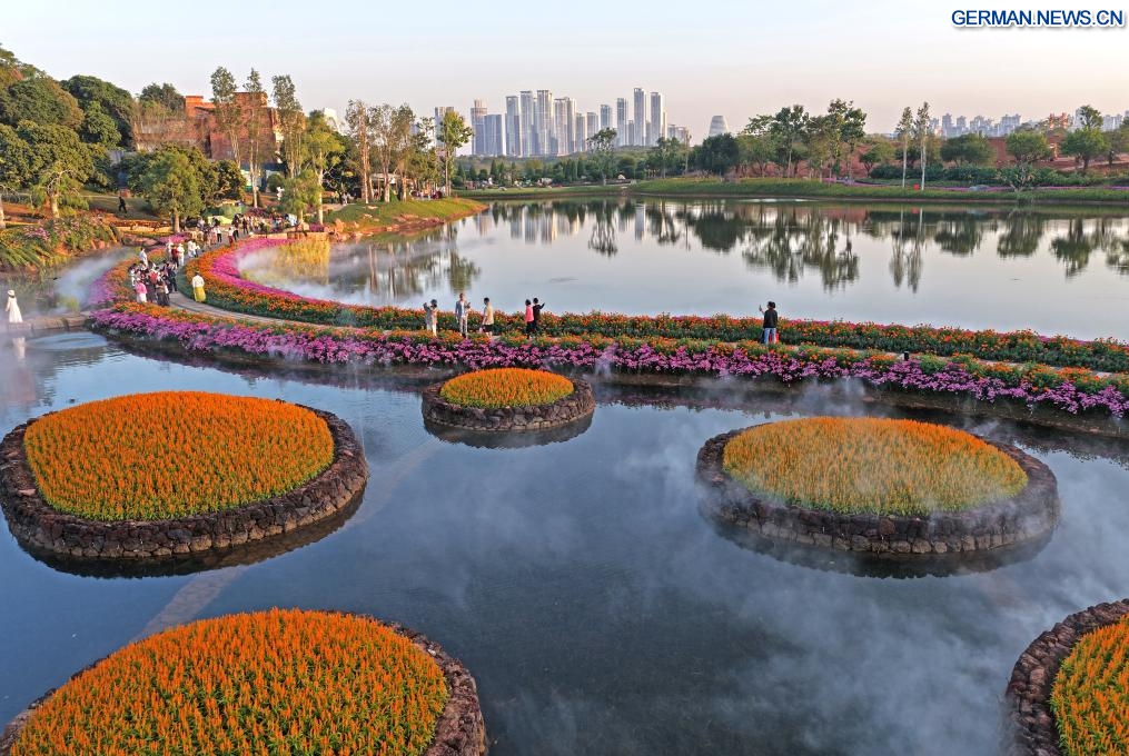 Touristen genießen Blumen im Landschaftsgebiet Qingxiu-Berg im südchinesischen Nanning