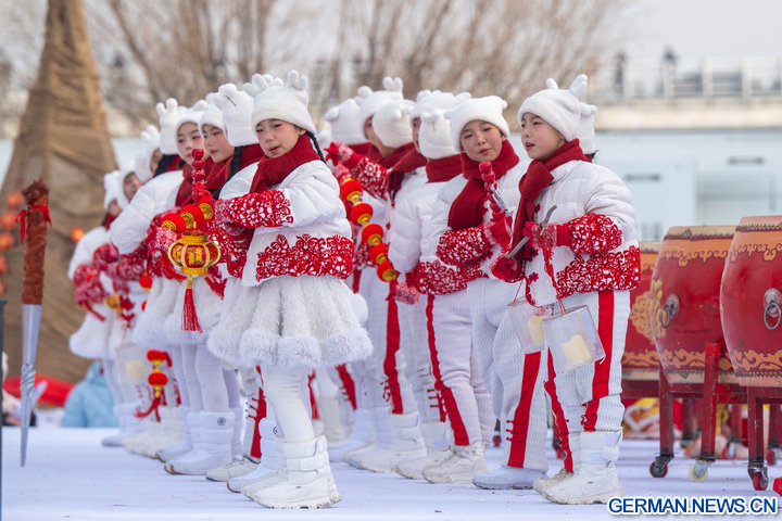 Das Foto zeigt Kinder bei einem Auftritt während eines Eissammelfests in Harbin in der Provinz Heilongjiang im Nordosten Chinas, 7. Dezember 2025. (Xinhua/Zhang Tao)