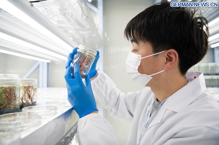 Ein Forscher überprüft das Wachstum von Sämlingen im Labor von Magicpen Bio in Hefei in der Provinz Anhui in Ostchina. (Foto vom 3. Dezember 2025, Xinhua/Zhang Duan)