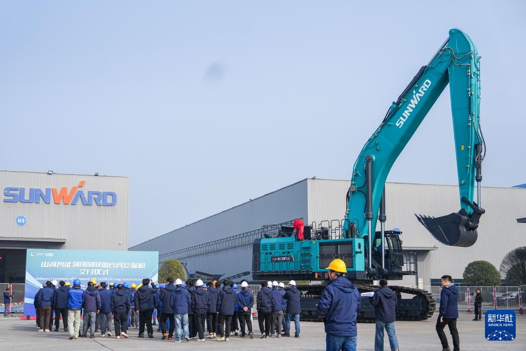 Die Übergabe des Lang-Reach-Baggerns SWE1650FLR findet im Sunward Industrial Park in Changsha statt. (Foto: Chen Sihan/ Xinhua)
