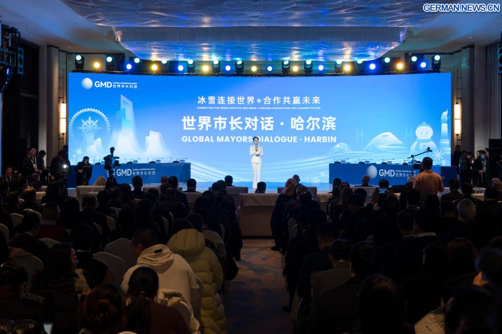 Dieses Foto vom 7. Januar 2026 zeigt einen Anblick auf die Hauptdiskussionsrunde des „Global Mayors Dialogue in Harbin“ in Harbin in der nordostchinesischen Provinz Heilongjiang. (Quelle: Xinhua/Zhang Tao)