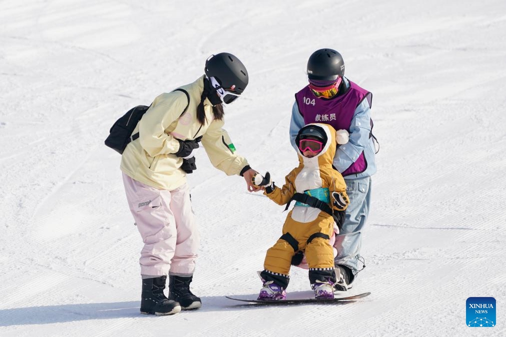 Ein Kind lernt Snowboarden. (7. Januar 2026, Xinhua)