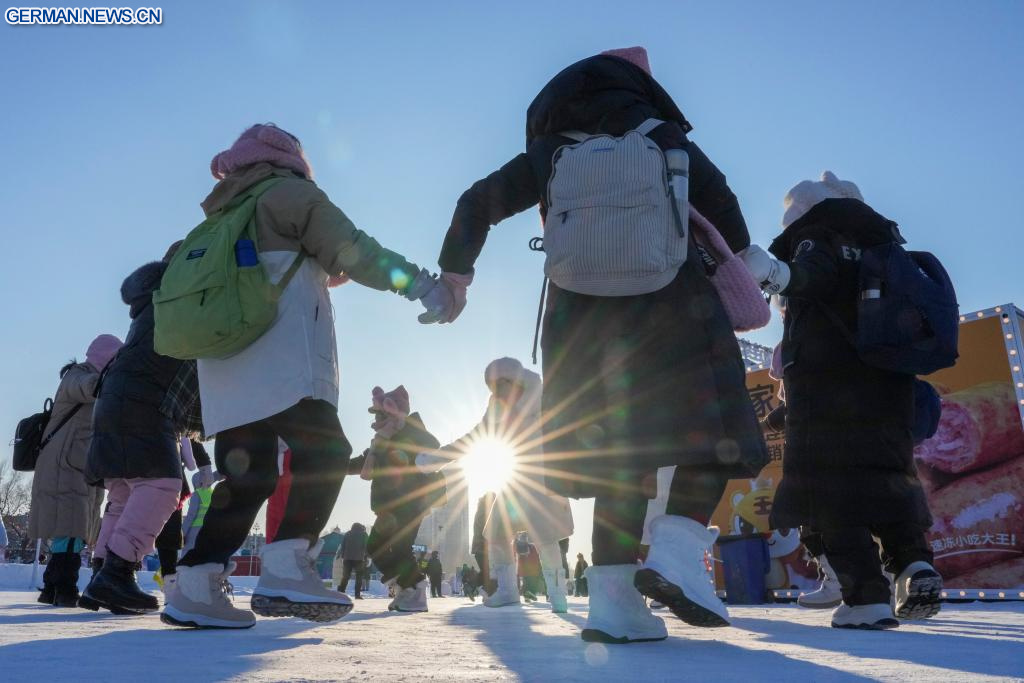 Zugefrorener Songhua-Fluss zieht Menschenmassen zu Eis- und Schnee-Vergnügungen an