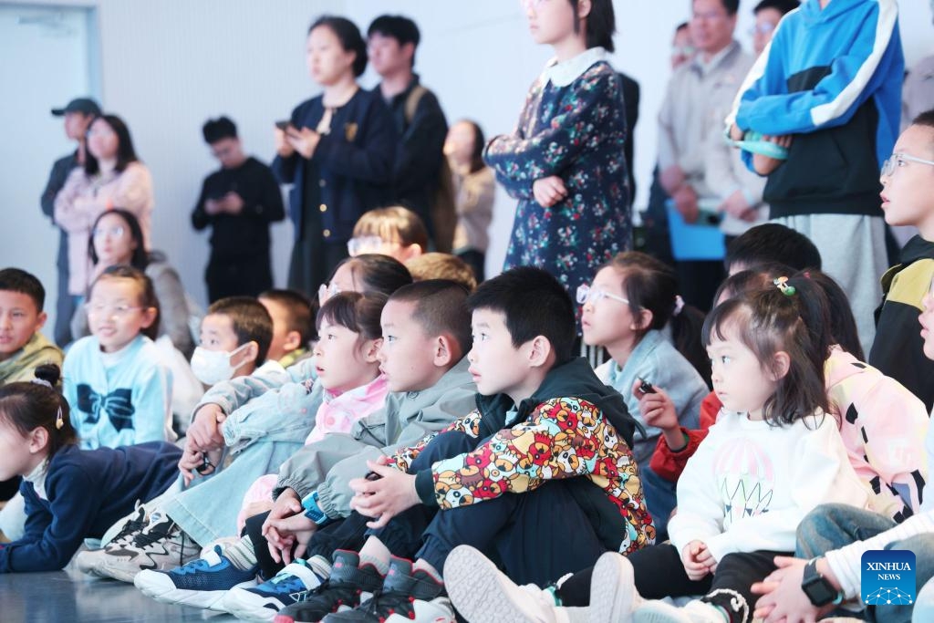 Kinder hören einem Ingenieur zu, der ihnen die Anlagen der Taiyuan Heavy Machinery Group erklärt. (19. April 2025, Xinhua)