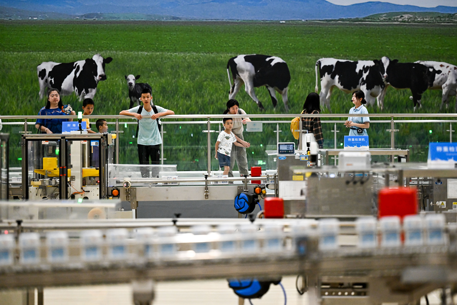 Kinder informieren sich über die Milchproduktion der Yili Group in der nordchinesischen Stadt Hohhot. (28. Juli 2025, Xinhua)