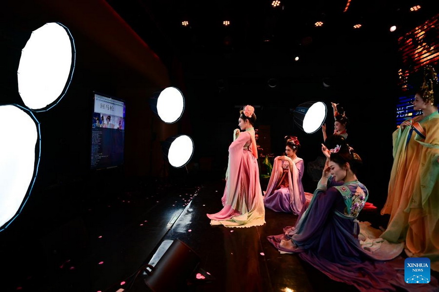 Schauspielerinnen treten während eines Livestreams in Xi'an in der Provinz Shaanxi im Nordwesten Chinas auf. (Foto: Xinhua/Zou Jingyi)