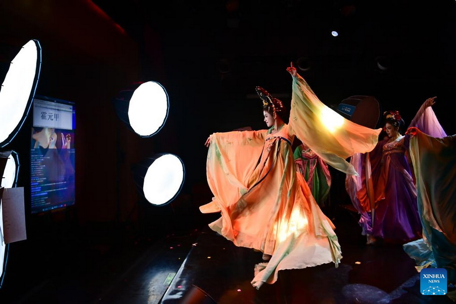 Schauspielerinnen treten während eines Livestreams in Xi'an in der Provinz Shaanxi im Nordwesten Chinas auf. (Foto: Xinhua/Zou Jingyi)