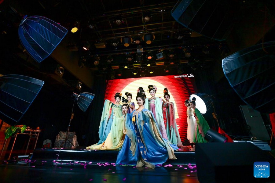 Schauspielerinnen treten während eines Livestreams in Xi'an in der Provinz Shaanxi im Nordwesten Chinas auf. (Foto: Xinhua/Zou Jingyi)