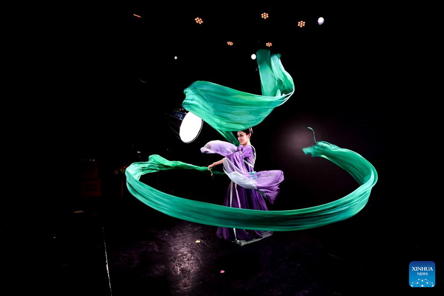 Eine Schauspielerin tritt während eines Livestreams in Xi'an in der Provinz Shaanxi im Nordwesten Chinas auf. (Foto: Xinhua/Zou Jingyi)