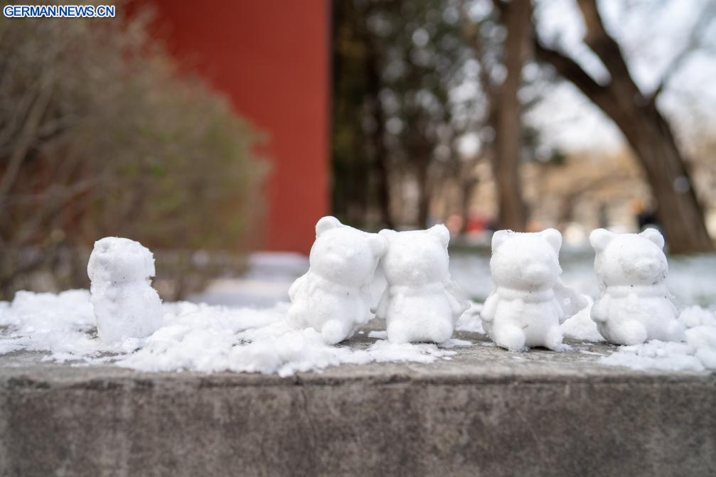 Das Foto zeigt kleine Schneemänner an einer Straße in Chinas Hauptstadt Beijing, 18. Januar 2026. In Beijing gab es an diesem Wochenende Schneefall. (Quelle: Xinhua/Xie Han)