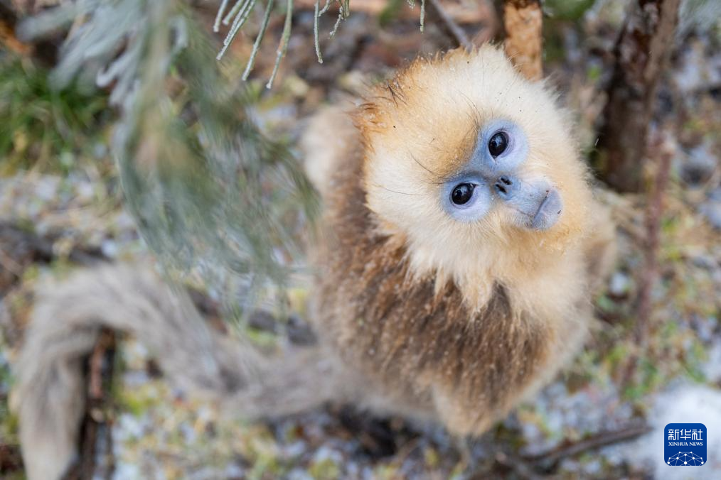 Eine Goldstumpfnase in den bewaldeten Bergen der Forschungsstation Dalongtan im Shennongjia-Waldgebiet. (Foto vom 19. Januar 2026, Wu Zhizun/Xinhua)
