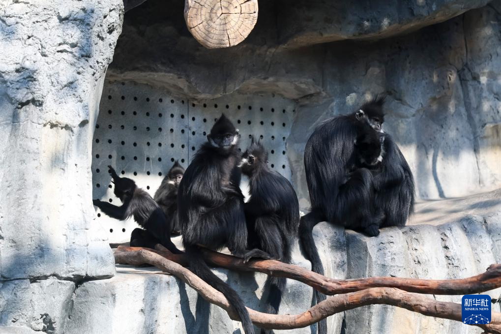 Ein Tonkin-Schwarzlangur nutzt einen Innenraum in der Nähe eines Klimaanlagenauslasses, um sich zu wärmen. (Foto: Wang Xiang/Xinhua)