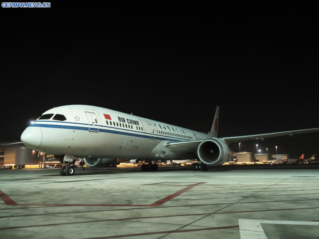 Der Erstflug von Air China zwischen Beijing und Abu Dhabi landet auf dem Zayed International Airport in Abu Dhabi in den Vereinigten Arabischen Emiraten, 24. Januar 2026. (Quelle: Xinhua)