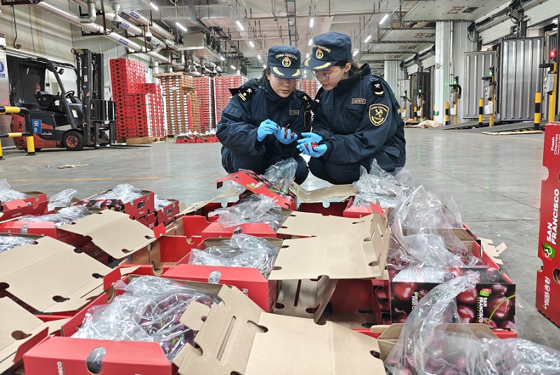 Da die Hochsaison für die importierten Kirschen näherrückt, verarbeitet Chinas größter Kirschimport-Knotenpunkt, der Hafen von Nansha in der Stadt Guangzhou in der südchinesischen Provinz Guangdong, riesige Mengen in Rekordgeschwindigkeit. Vor dem Frühlingsfest Mitte Februar werden die Importe im Hafen von Nansha voraussichtlich 200.000 Tonnen überschreiten, was fast einem Drittel der gesamten Kirschimporte Chinas entspricht.