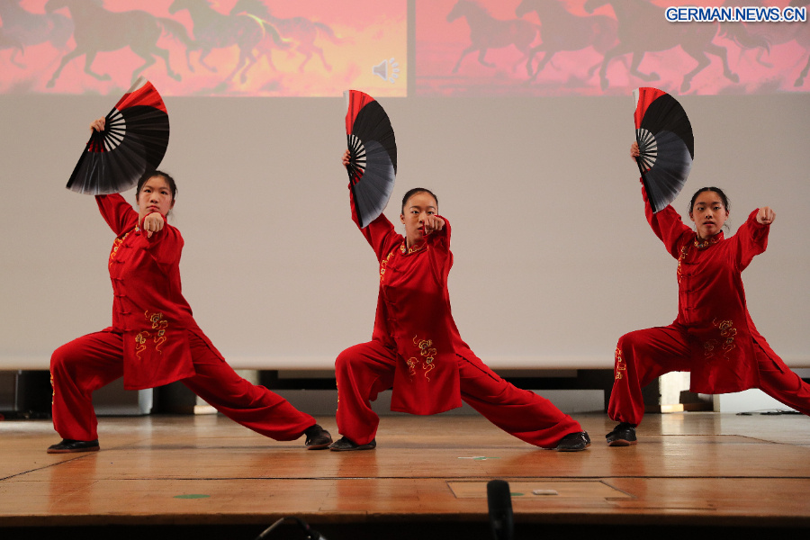 Das Foto zeigt eine Kung-Fu-Show bei der Frühlingsfest-Gala Berlin-Brandenburg 2026 in der Technischen Universität Berlin, 1. Februar 2026. (Xinhua/Du Zheyu)