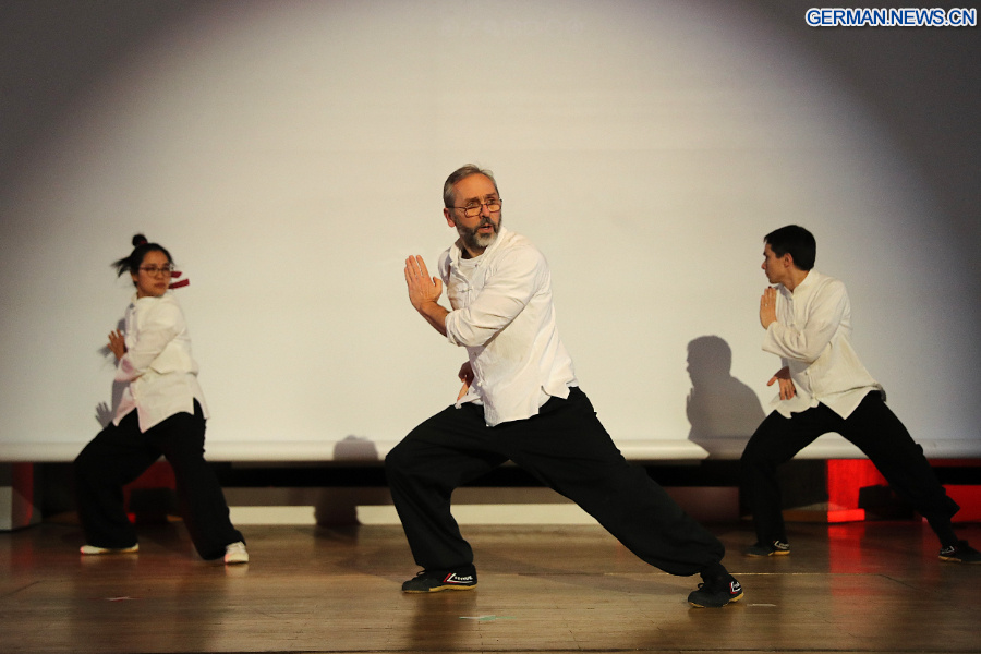 Das Foto zeigt eine Kung-Fu-Show bei der Frühlingsfest-Gala Berlin-Brandenburg 2026 in der Technischen Universität Berlin, 1. Februar 2026. (Xinhua/Du Zheyu)