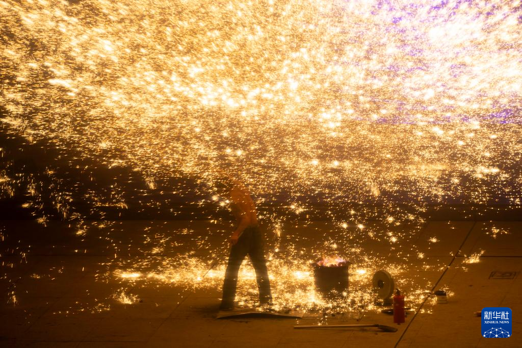 Das geschmolzene Eisen ist ein immaterielles Kulturerbe von China. (Foto vom 8. Februar 2025, Wang Xiang/Xinhua)