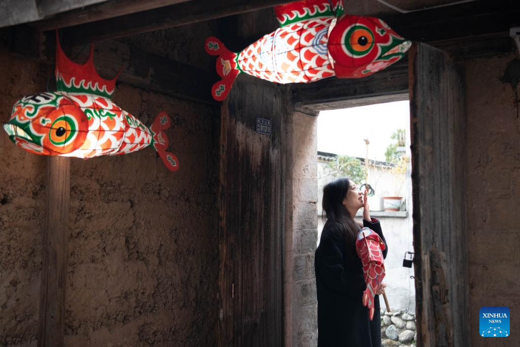 Feierliche Stimmung zum Frühlingsfest in historischen Dörfern in Ostchina