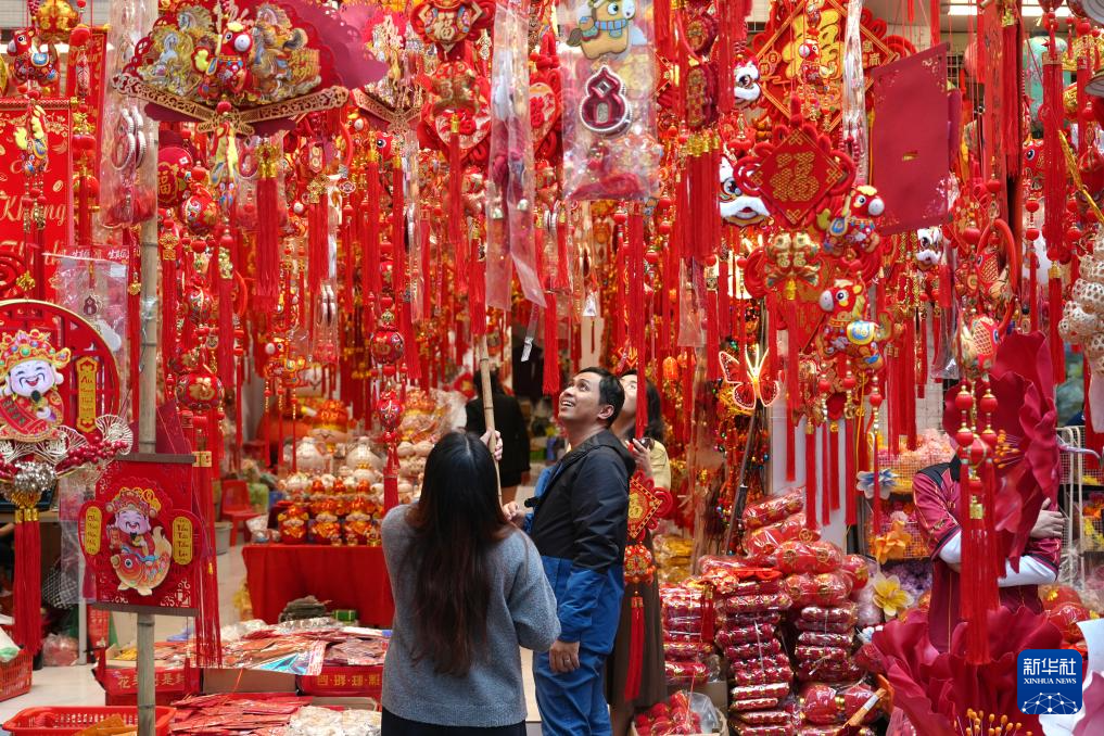 In einem Geschäft sind viele Neujahrswaren zu kaufen. (Foto vom 12. Februar 2026, Liu Ying/Xinhua)