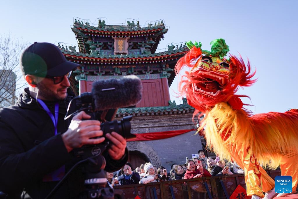Ein Ausländer filmt die Löwentanz-Darbietung. (17. Februar 2026, Xinhua)