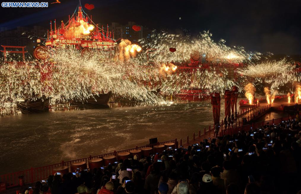 Feuerwerksshow mit geschmolzenem Eisen zur Feier des Frühlingsfestes