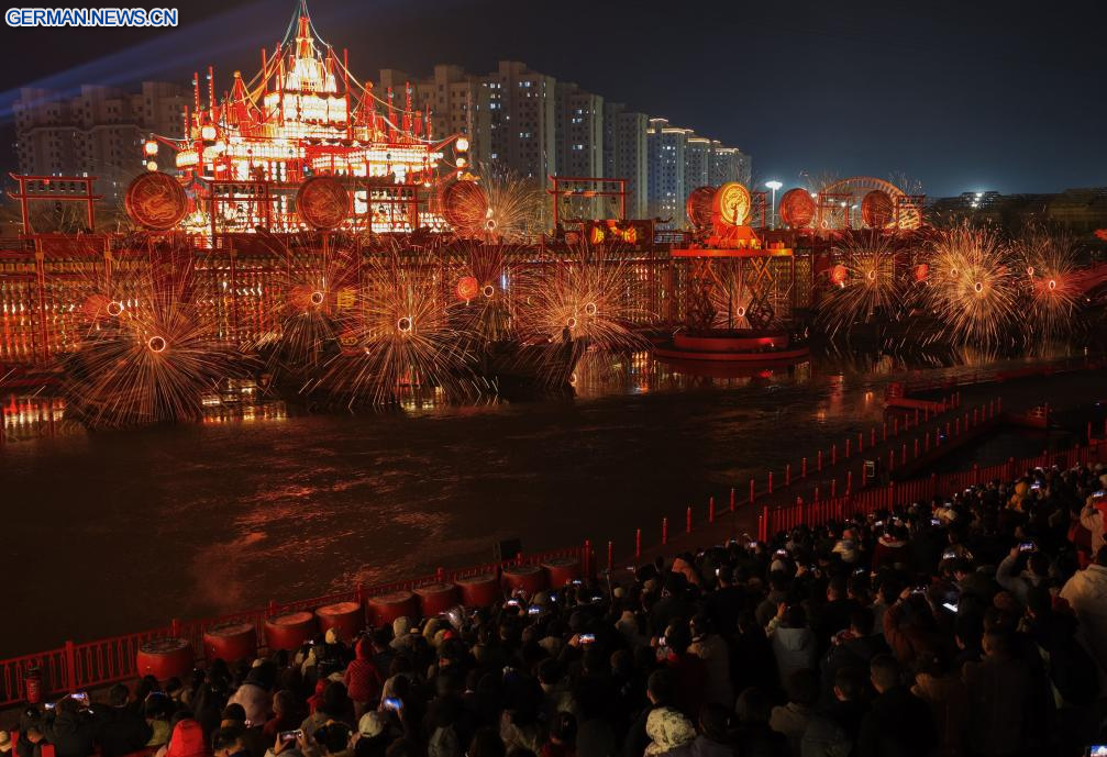 Feuerwerksshow mit geschmolzenem Eisen zur Feier des Frühlingsfestes