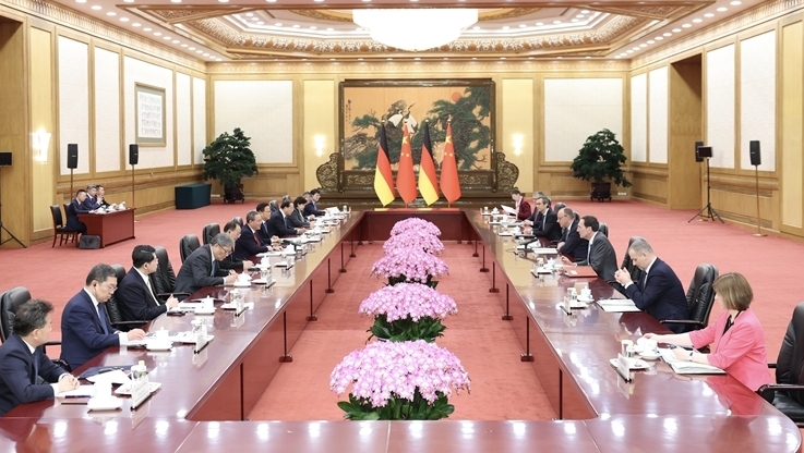 China sei bereit, mit Deutschland zusammen Dialogmechanismen, wie Regierungskonsultationen, voll auszuschöpfen, die Abstimmung von Entwicklungsstrategien und die politische Kommunikation zu stärken sowie die Handelsbeziehungen zwischen beiden Ländern auszubauen und zu verbessern.