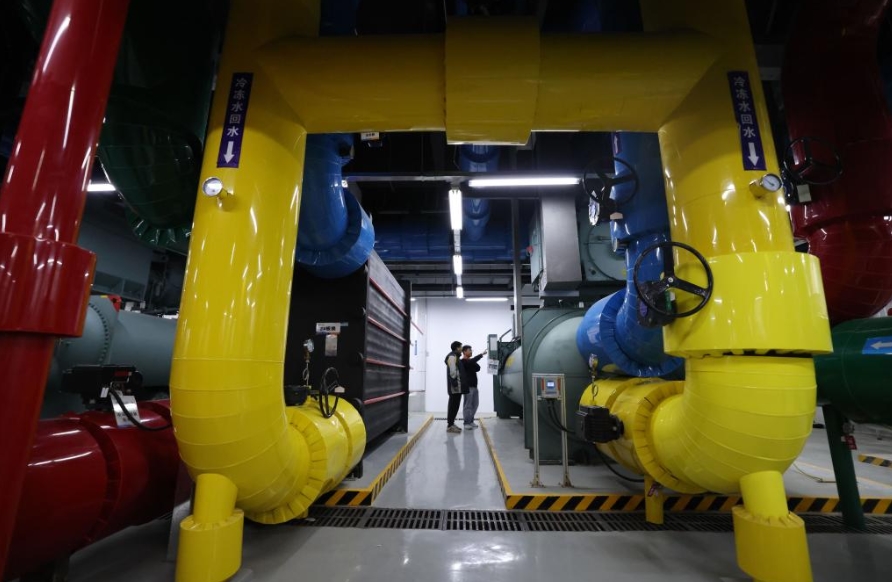 Ingenieure patrouillieren in der Kühlstation eines intelligenten Rechenzentrums von China Telecom im Beijing-Tianjin Industrial New City Gaocun Data Intelligence Innovation Park im nordchinesischen Tianjin, 26. Februar 2026. (Quelle: Xinhua/Sun Fanyue)