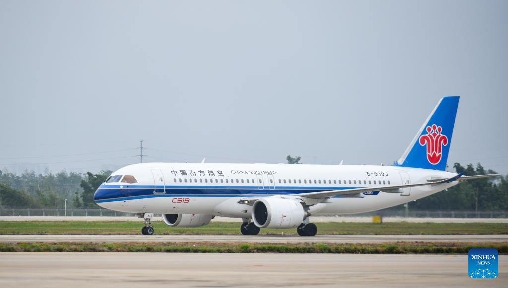 Ein Flugzeug vom Typ C919 landet auf dem Haikou Meilan International Airport in Haikou. (11. Dezember 2024, Xinhua)