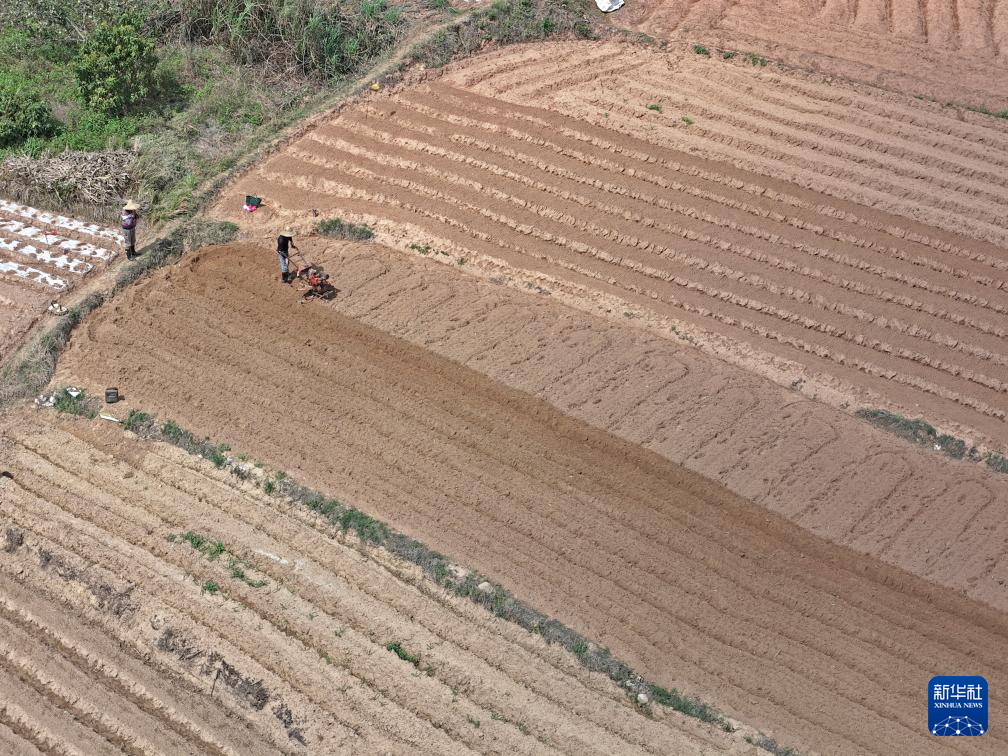 Landwirte bei der Bodenbearbeitung auf den Feldern von Pumiao zu Beginn des Frühlings. (Foto: Zhou Hua/ Xinhua)